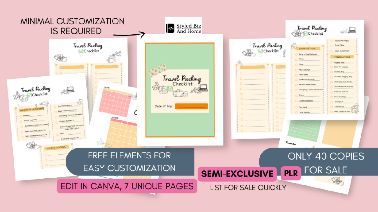 Travel Packing Checklist PLR Semi-Exclusive